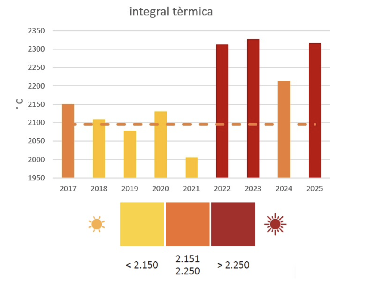 Any plujós, també durant la verema. Temperatura en mitjana.